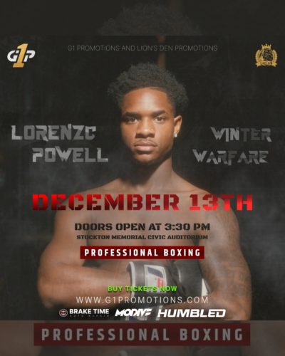G1 Promotions and Lion’s Den Promotions join forces for an unforgettable Winter Warfare at the Stockton Memorial Civic Auditorium on ...