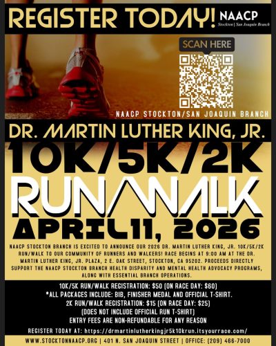 The NAACP Stockton Branch is thrilled to announce the return of their 2026 Dr. Martin Luther King, Jr. 10K/5K/2K Run/Walk ...