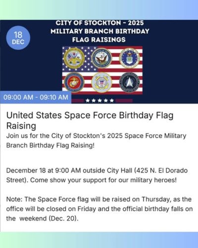 Join them for the City of Stockton's 2025 Space Force Military Branch Birthday Flag Raising! ...