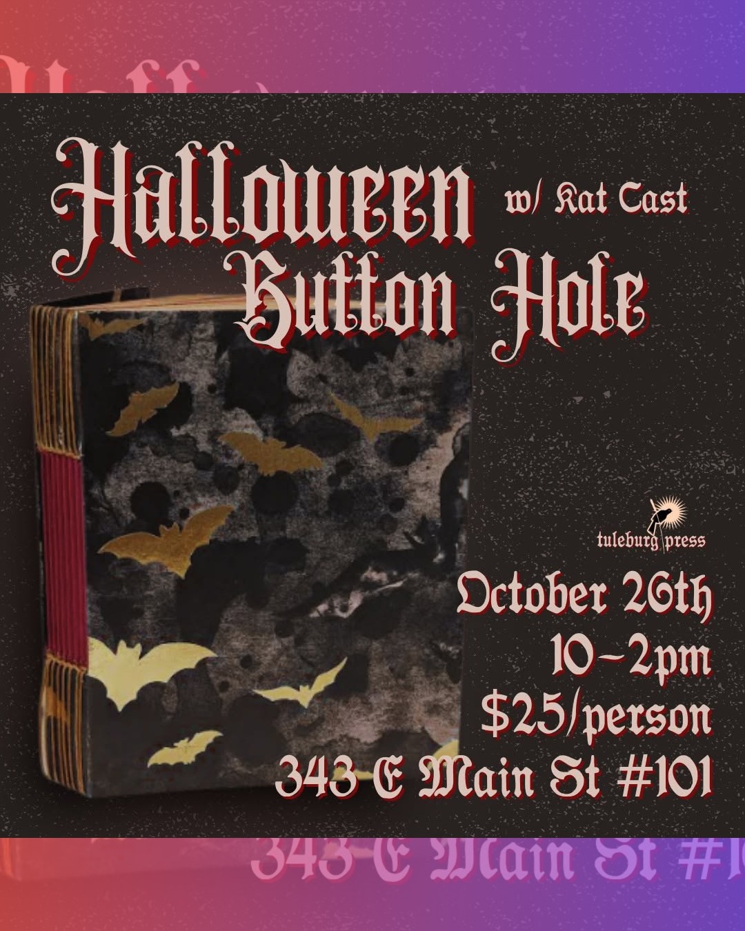 Join resident book artist @kat_cat_art from The Write Place – Tuleburg Press for a spooky Button Hole Stitch Binding workshop!