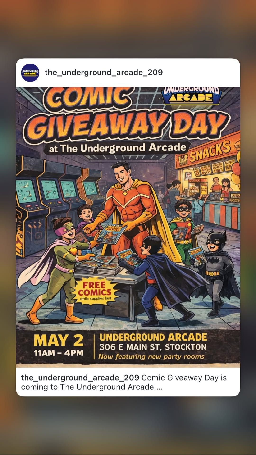 They’re excited to announce their first Comic Giveaway Day at The Underground Arcade on Saturday, May 2 from 11am–4pm.