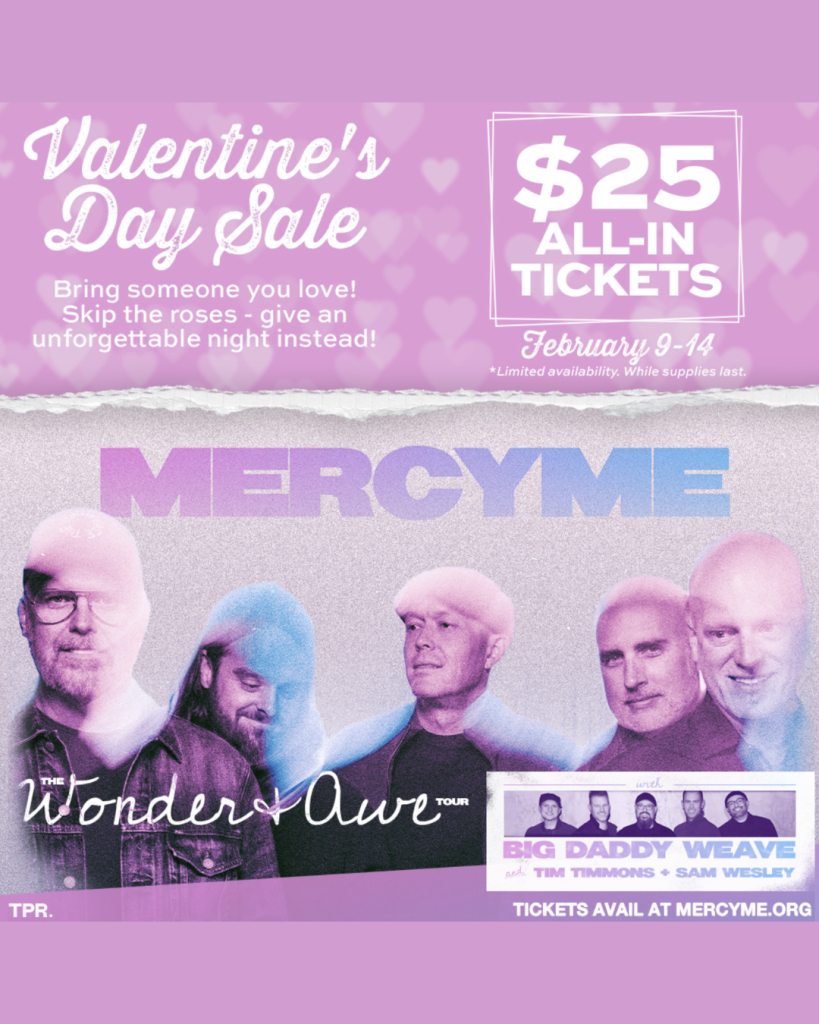 - For a limited time, Adventist Health Arena is having a Valentine’s Day sale for the MercyMe performance happening in April. All tickets starting February 9th until February 14th will only be $25 for this show!