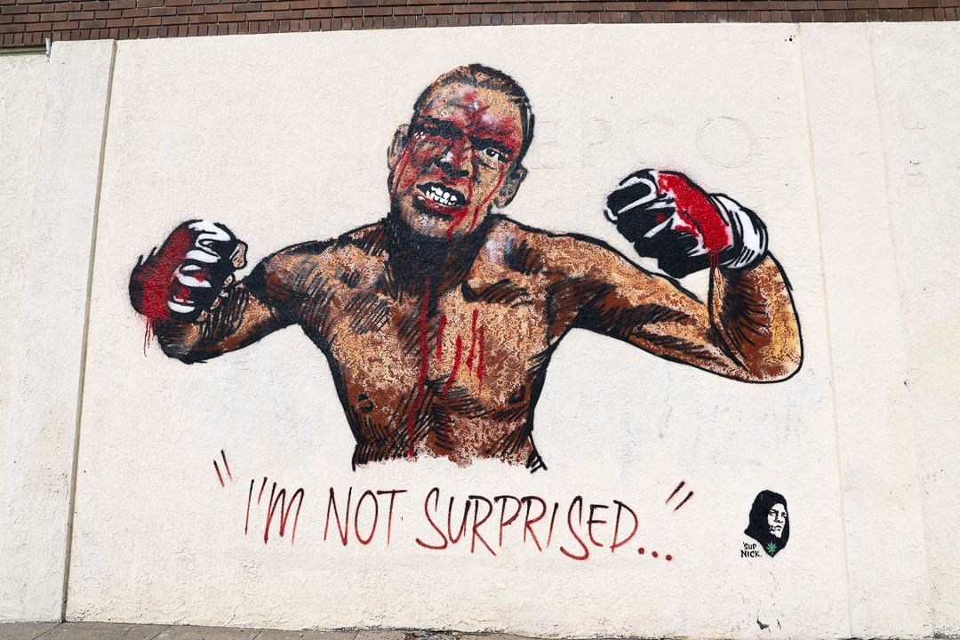 Art by Jared – Nate Diaz Mural (No Longer Visible) Categorized Under: Downtown Murals 29 S Aurora St., Stockton, CA 95202 Artist: Jared Rusten