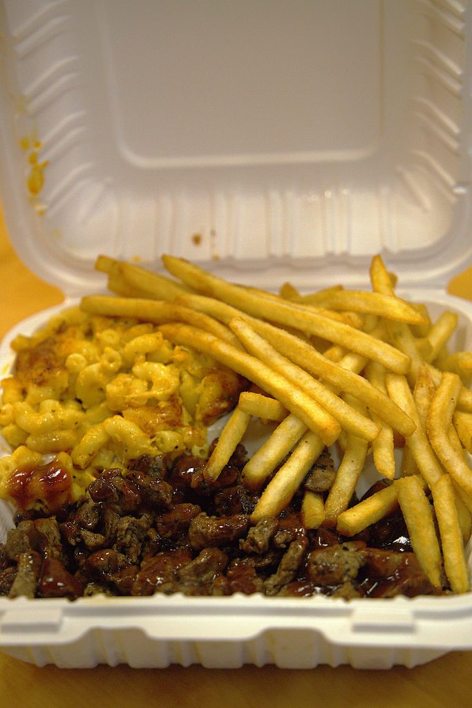 Choosing the meat was easy, as they are best known for their tri-tip. However, narrowing down the sides—which include mac & cheese, fries, baked beans, potato salad, and greens—was a challenge. I finally settled on my personal favorites: fries and mac & cheese.